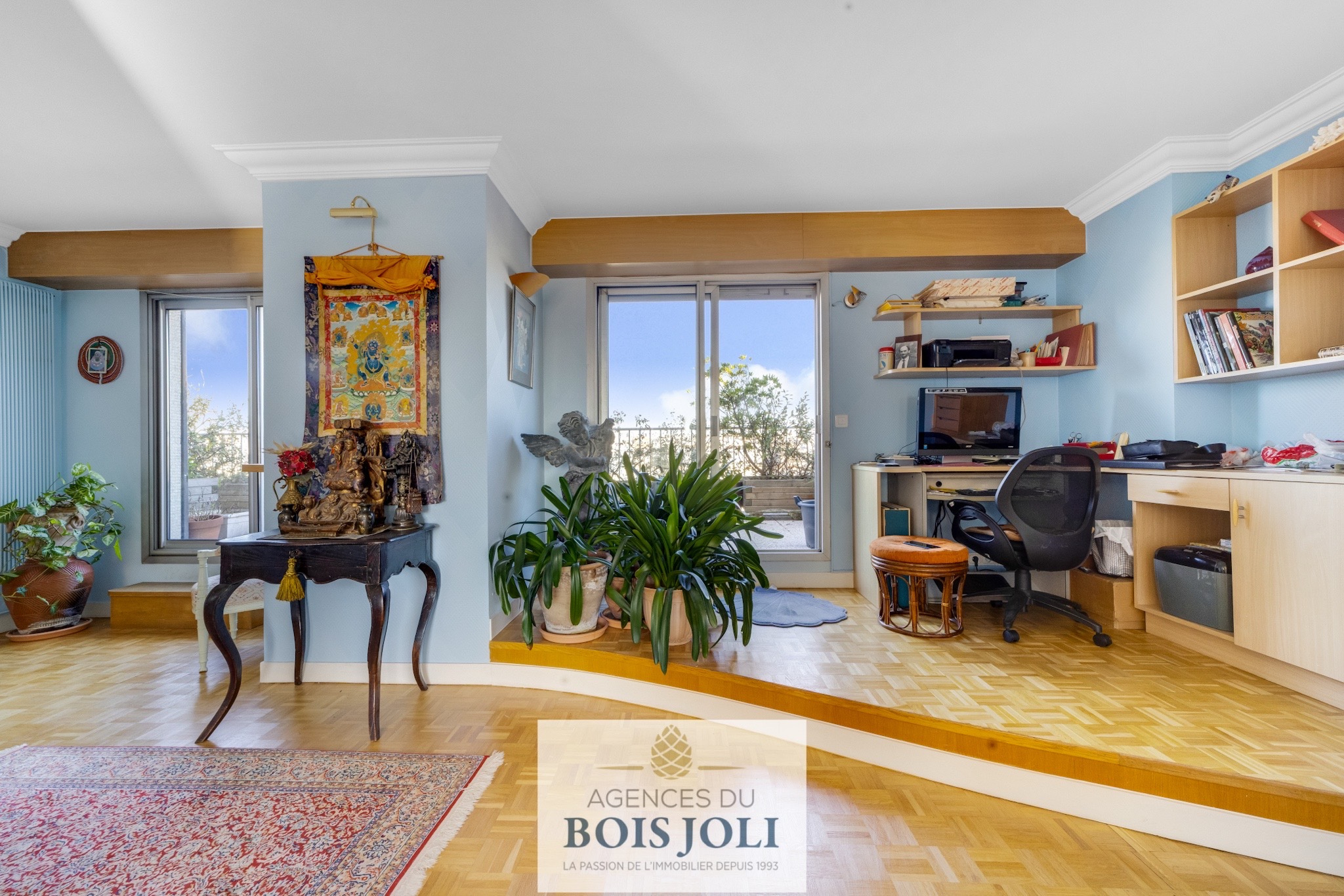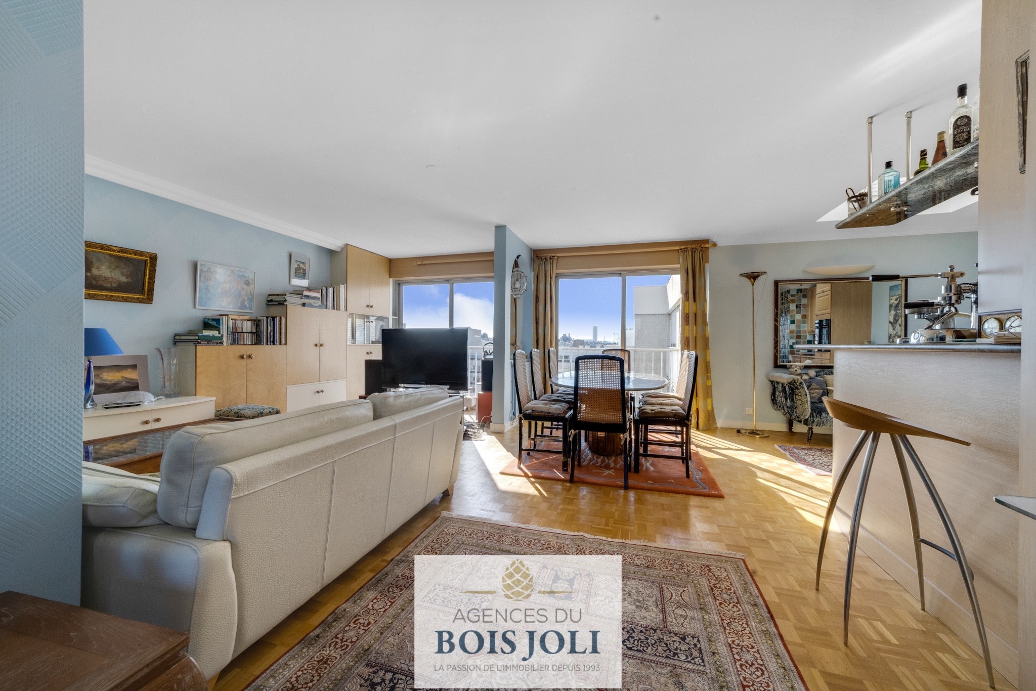 Bien composé d'une grande entrée avec coin bureau, d'une cuisine ouverte sur un double séjour de 40 m2.