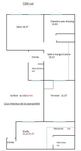 Terrasse de 21m2 accessible depuis le 3 pièces et le studio.